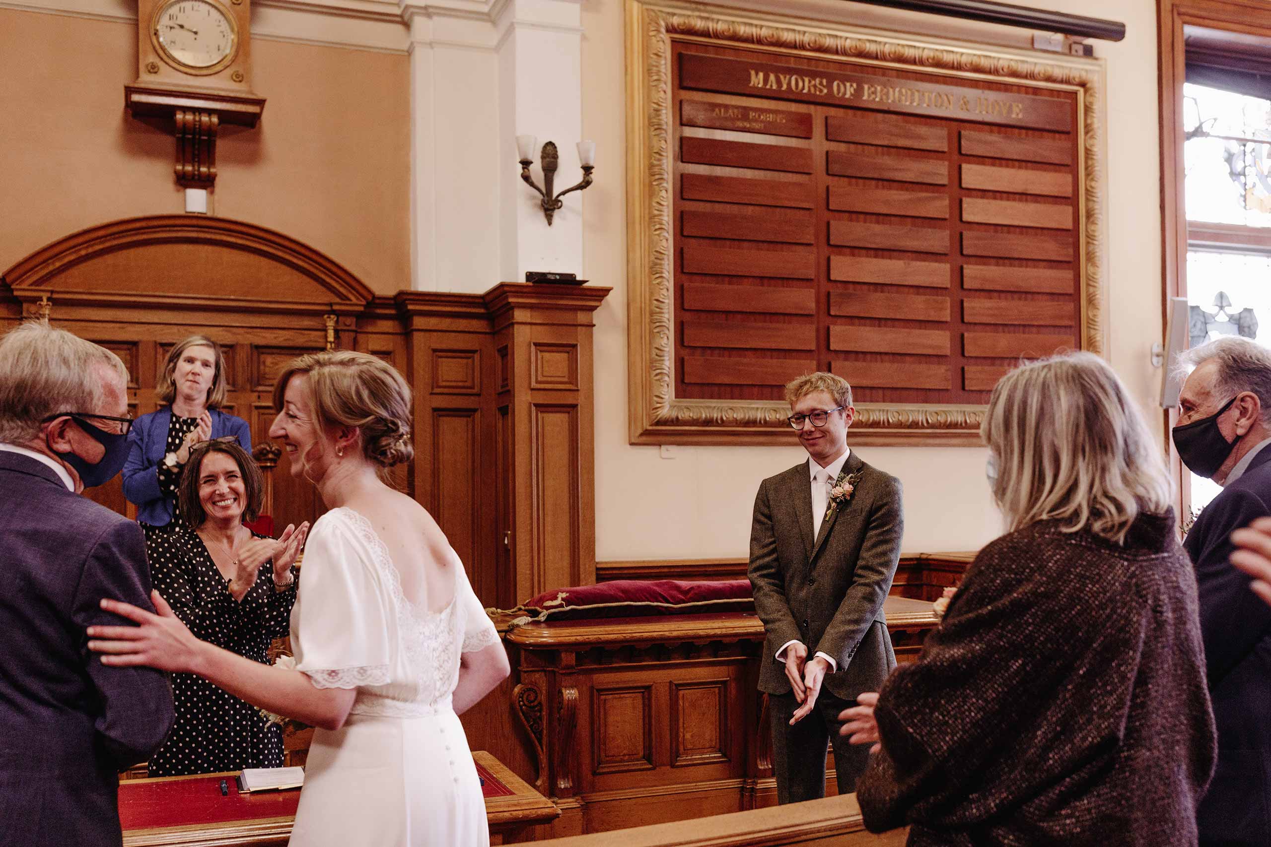 For me and of course the bride and groom, Anna and Louis, it was huge relief that it was able to go ahead and it was important to put all the stress of restrictions behind us and relax and let the day and the love flow. There were just 15 people at the wedding and with three hours of coverage at Brighton Town Hall and the Ivy in Brighton, my job was to follow the action naturally, capture all the candid moments and use my experience to find the best backdrops to capture the beauty and excitement. Here are a small number of images from the day that reflect the atmosphere, emotion and beauty of this special wedding day. I hope you enjoy what you see and please do get in touch if you’d like a small ceremony photographed any time because I’d love to shoot more before my next one in February (we hope)!
