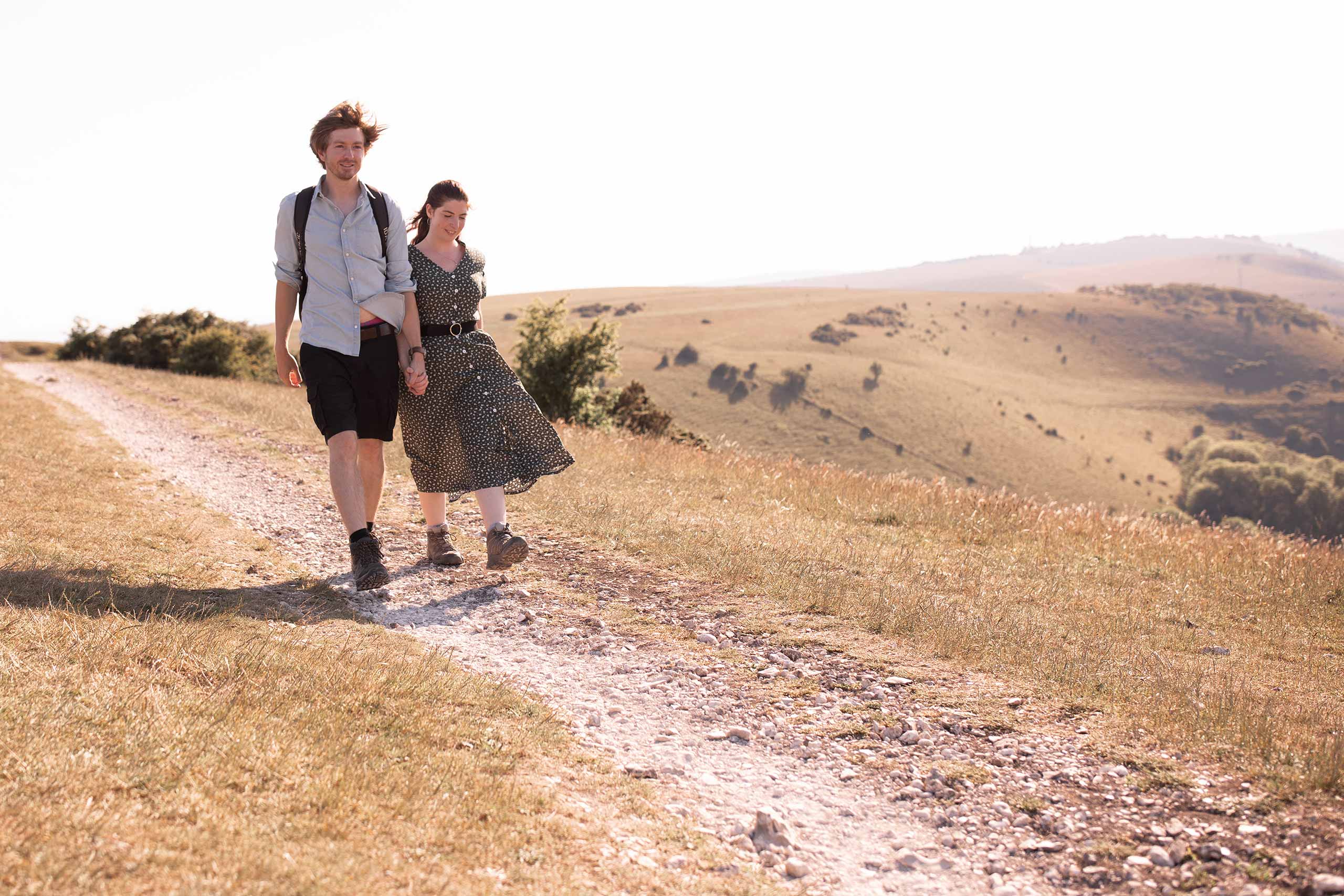 Having patiently waited for more than 3 months for lockdown to ease enough to start shooting again, I was rewarded with a wonderful pre-wedding shoot on the South Downs with the lovely Sara and Will. The three of us love walking, so we were making the most of the opportunity with a 4 mile hike along and around the South Downs Way from early evening until sunset. To make this even more of an opportunity I was shooting film and stills throughout the hike, recording the lovely moments against the stunning landscape close to the Devils Dyke. It’s hard to convey just how much I enjoyed this shoot, however I’m sure that will become clear in the lovely images below. Thanks guys for being such lovely company and for an awesome e-shoot! x