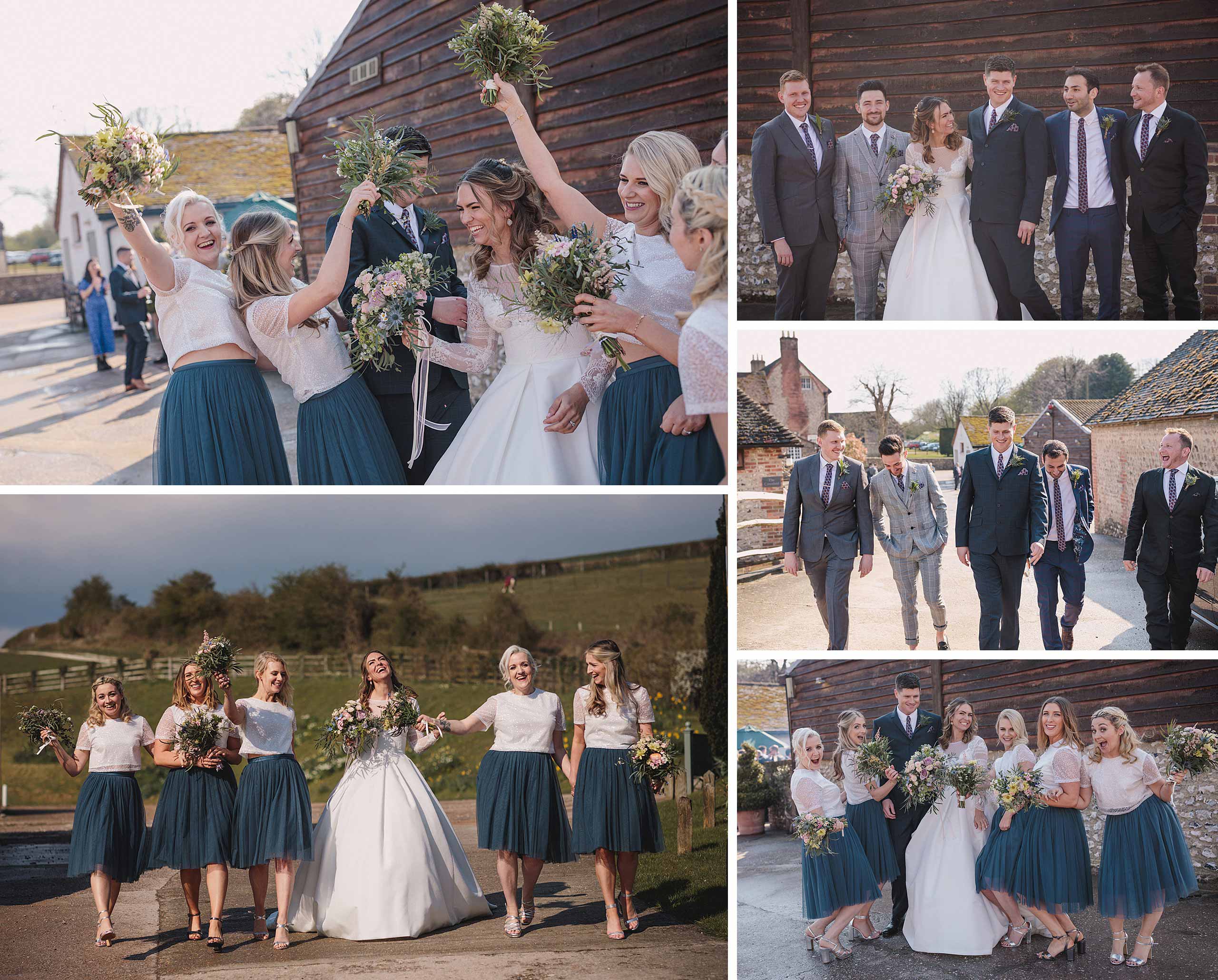 What a cracking day Tasha and Patrick’s day was at Pangdean Barn. Starting the day at bride’s preparations at Hotel Uni in Regent Square, Brighton was a great start and the room was buzzing with bridesmaids chatter and laughter. After disappearing for half an hour to photograph the groomsmen together and with gran, I returned in time for a group shot outside the hotel before nipping onto the beach for a couple of minutes before heading to the ceremony.